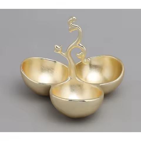 Golden Floral Triple Bowl Nuts Server Decorative Chocolate Snack Tray for Dry Fruits Sweets Elegant Table Display Home Decor