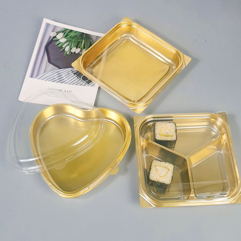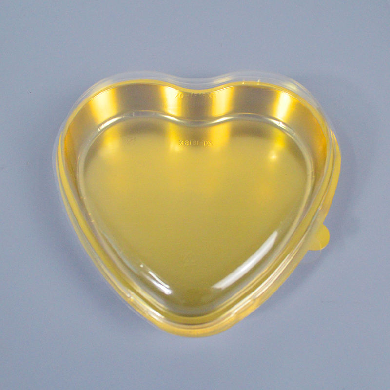 Golden Food Packaging Disposable Divided Salad Box Heart-Shaped Lid PET Plastic Fresh-Cut Fruit Chocolate Dinnerware Tableware