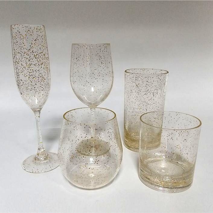 Golden Glitter Acrylic Stemless Drink Wine Glass