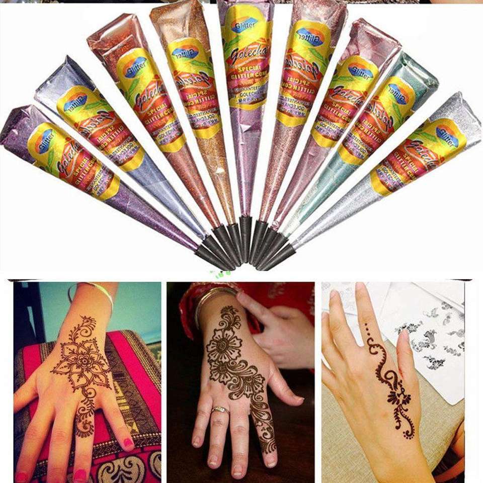 Golden Glitter Henna Cone, Pack of 12 Pieces | 2 Pieces of Each Color