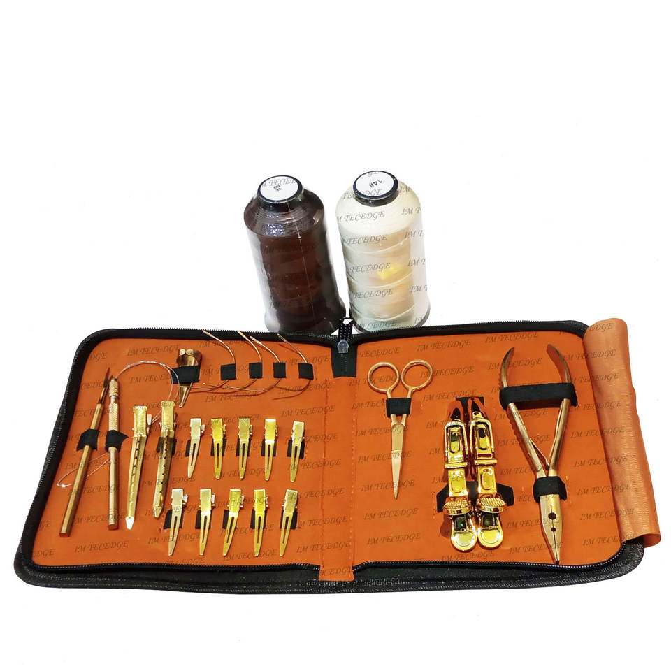 Golden Hair Extension Salon Tools Razor Comb Kit With Micro Ring Beads Opener Closer Pliers and Cutting Scissor