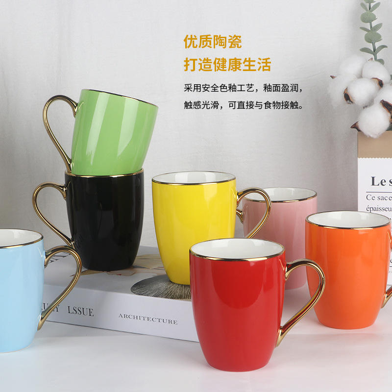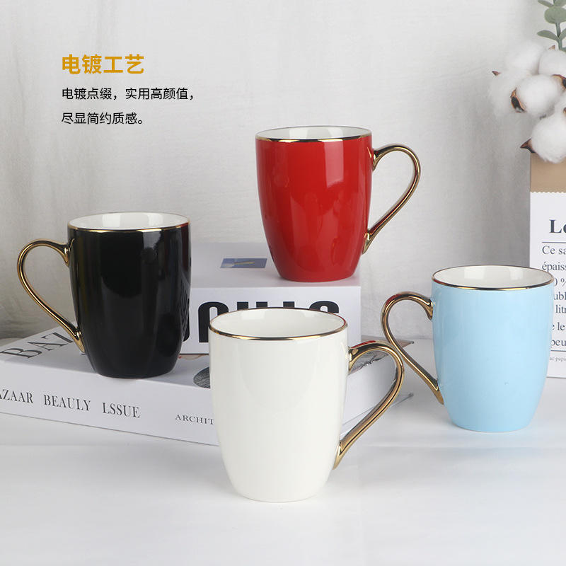 Golden Handle Ceramic Mug Solid Color Modern Design Business Gift Cup For Office Hotel Opening Souvenirs