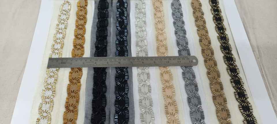 Golden High Quality Beads Crystal Mirror Rhinestone Hot Fix Lace Embroidery Trim for African Wedding Dress and Bridal Fan