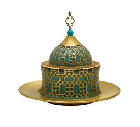 Golden Lid Handmade Eco-Friendly Lead Free Dates Serving Bowl Minakari Design Customizable Color for Kitchen Middle East Wedding