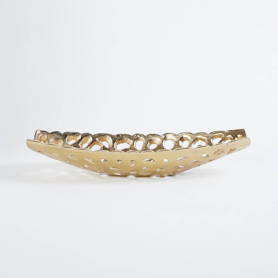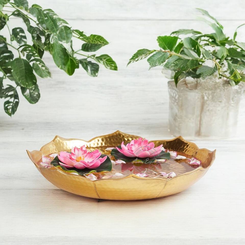 Golden Lotus Bowl Decorative Centerpiece Tray Handcrafted metal bowl with pink lotus accents