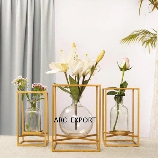 Golden Luxury Designing Ware New Style With Glass Ware Fancy Stylish Decoration Flower Vase