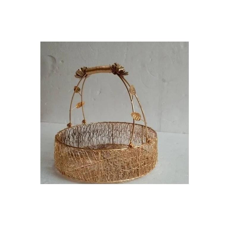 Golden Mesh Trolley Basket for Storages & Containers at Low Price Metal Wire Mesh Hamper Gift Basket for Home Trolley Basket