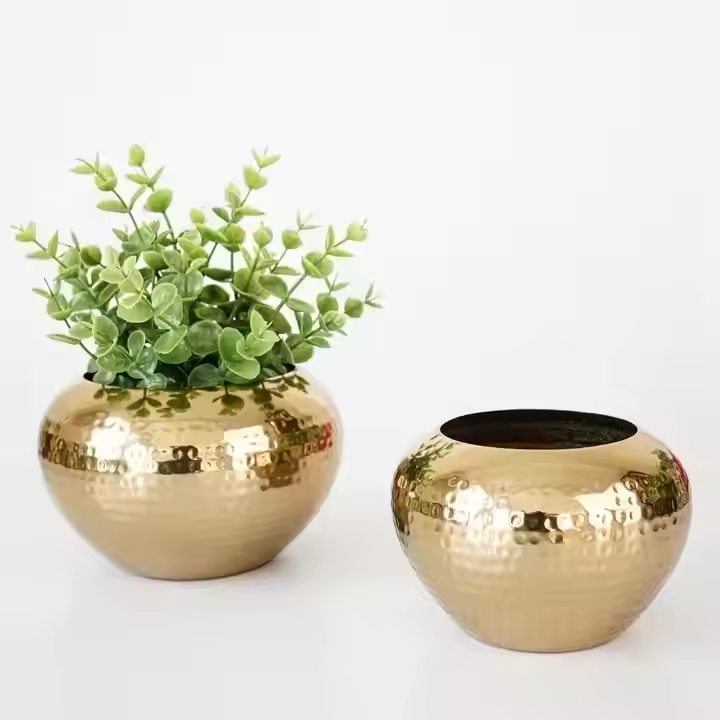 Golden Metal Planter Hammered Design Metal Planter Topmost Trending Metal Planter Flower Pots Vases Set in Affordable Low Prices