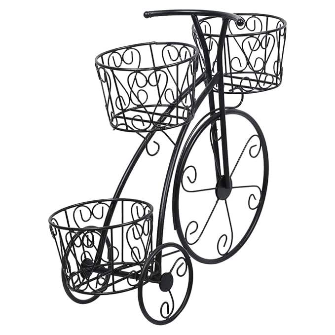 Golden Metal Planter Stand with Decorative Design for Home Garden Patio Modern Flower Pot Holder