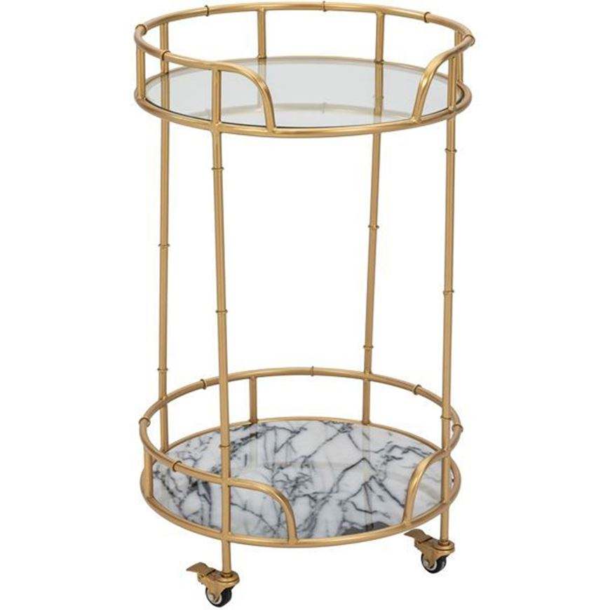 Golden Metal Trolley With White Marble Top For Luxury Hotel Restaurant Serving Trolley Most Popular Product Decorative Trolley
