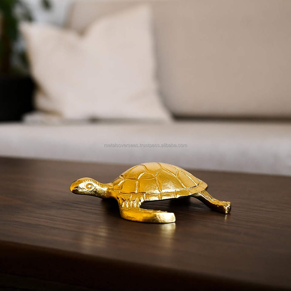 Golden Metal Turtle Figurine Feng Shui Tortoise Showpiece for Wealth, Longevity and Office Desk Decor