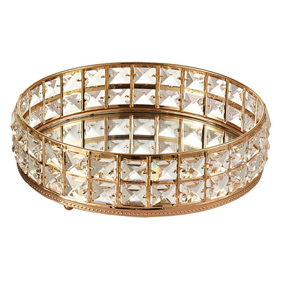 Golden Mirrored Crystal Storage Tray Ornate Jewelry Trinket Holder