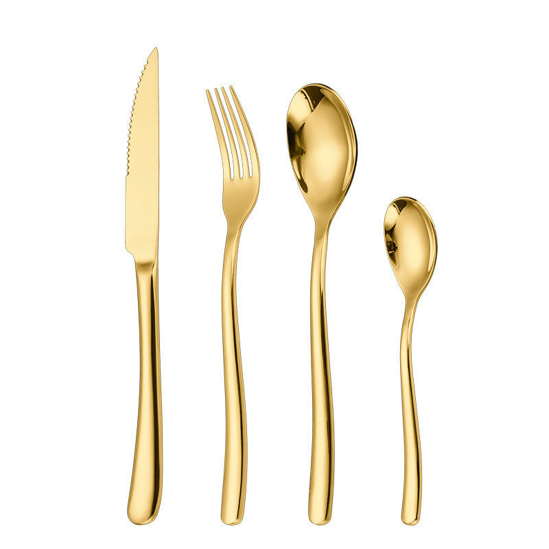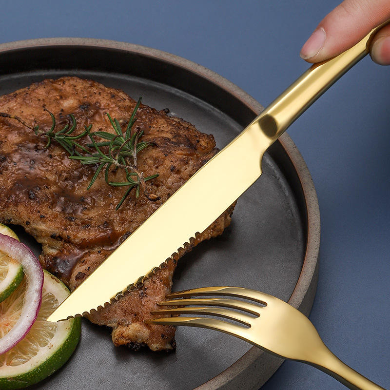 Golden Moonlight Stainless Steel Steak Knife Fork Set Dishwasher Safe Western Cutlery For Wedding Adult Use