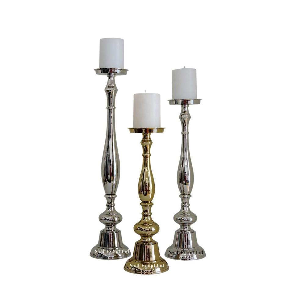 Golden Metal Decorative Candle Stand Christmas Tabletop Pillar Candle Holders for Home Wedding and Dining Room Decor