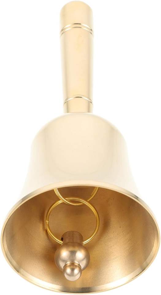 Golden Plated Brass Altar Bell with Handle for Prayer Pooja Church Temple Use Traditional Hand Bell for Worship and Home Decor