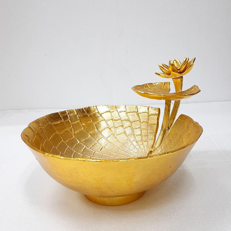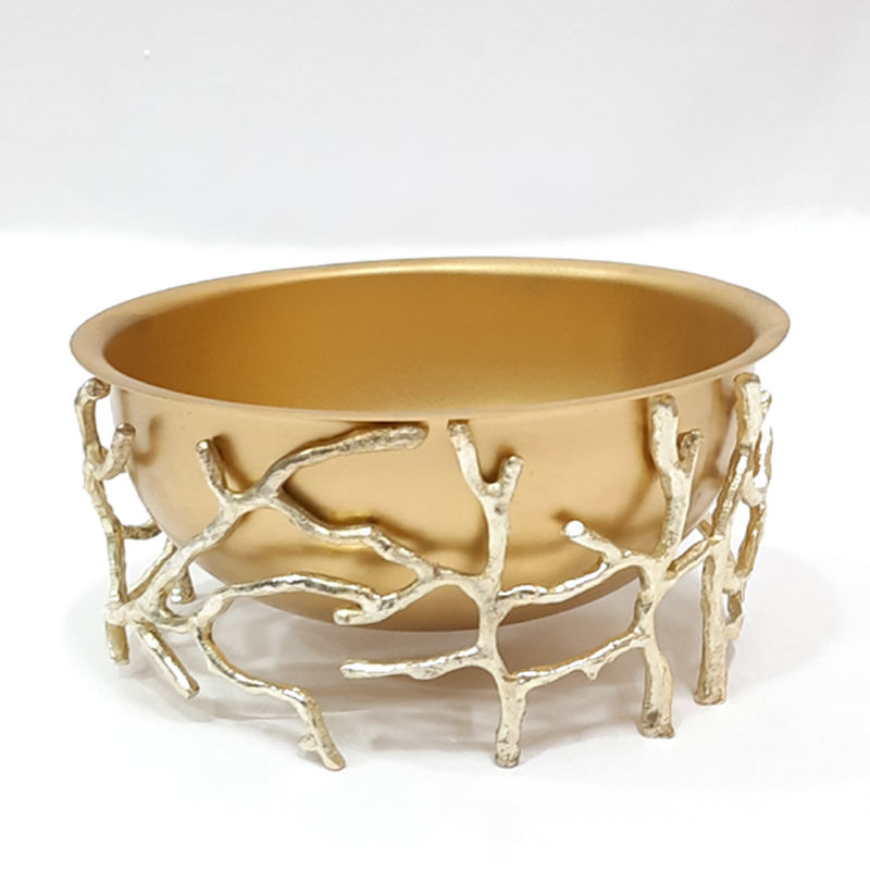 Golden Plated Round Shape Decorative Bowl Stainless Steel Aluminum Metal High Standard Ceramic Free Bowl