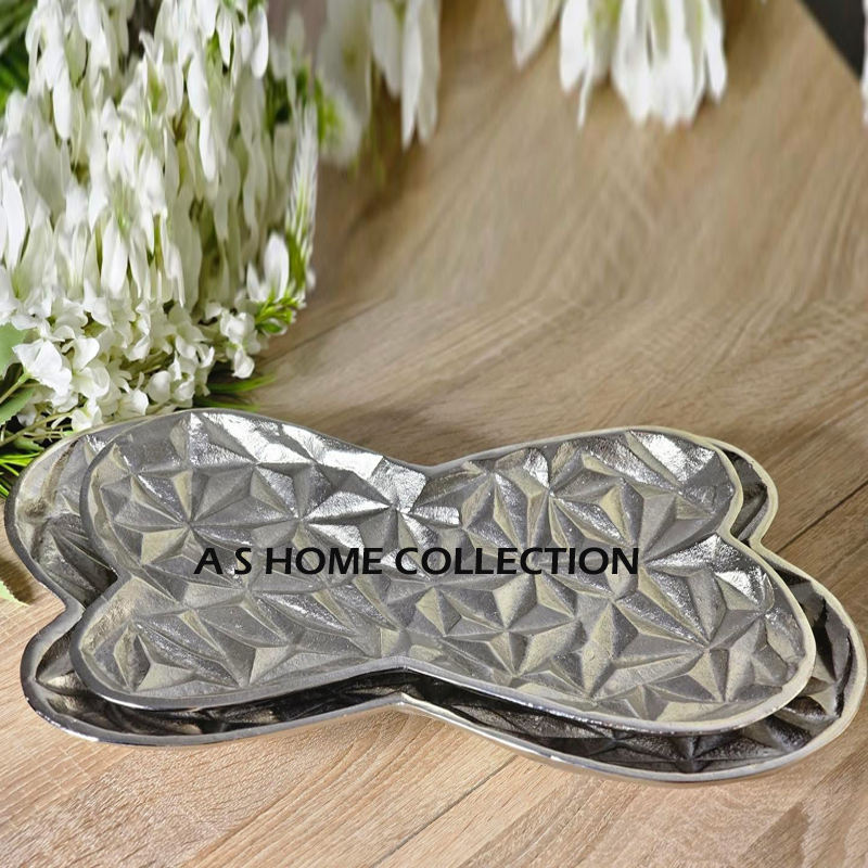 Golden Plated Stainless Steel Glass Material Flower Leafy Design Irregular Shape With Handle Serving Tray