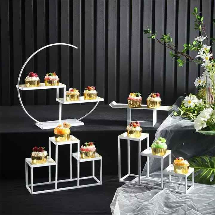 Golden Rectangular Cake Stand Dessert Display Tiered Cupcake Holder Wedding Birthday Party Elegant Metal Glass Kitchen Decor
