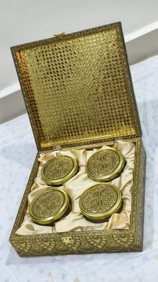 Golden Rectangular Decorative Gift Box with Four Metallic Containers Luxury Festive Hamper for Weddings
