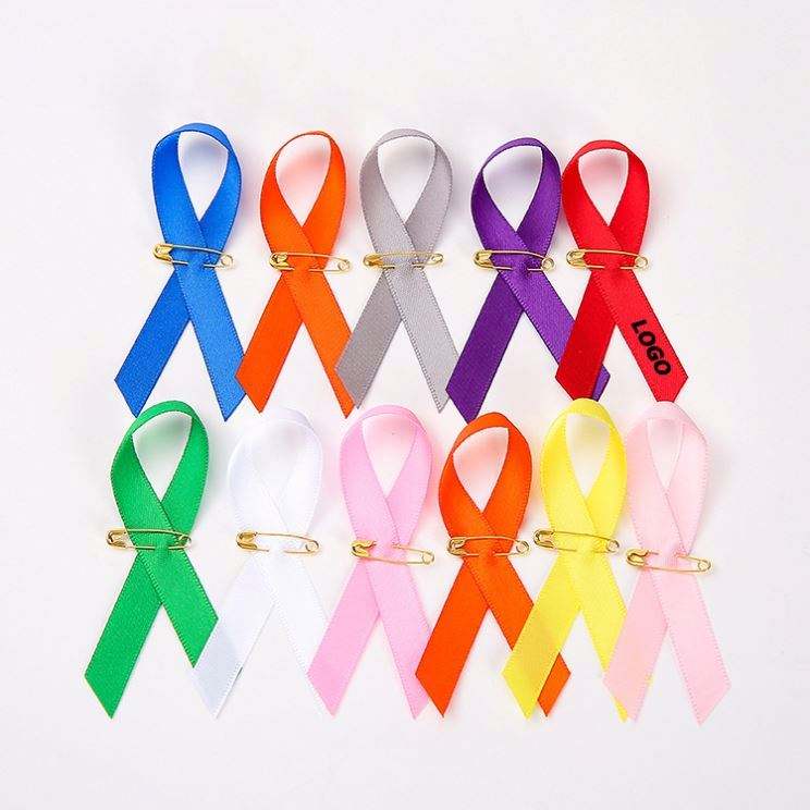 Golden Red Nylon Ribbon Pin-AIDS Awareness Lapel Pin Silk Screen Printed Portable for Charity Events Promotional Gifts