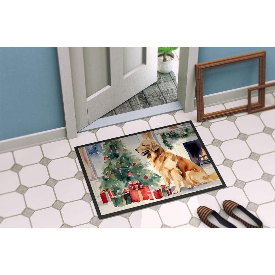 Golden Retriever Christmas Doormat Non-Slip Washable Low Pile Indoor and Outdoor Rug 24H X 36W Front Door Mat for Entryway