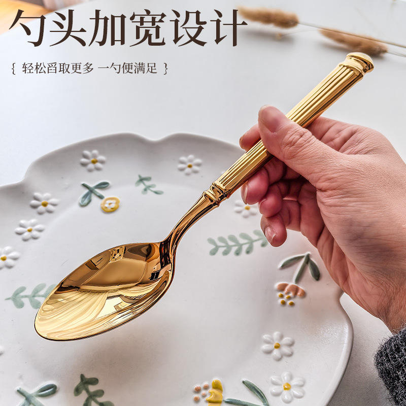 Golden Roman Column Flatware Set 304 Stainless Steel Knife Fork Spoon For Western Dining Party Use