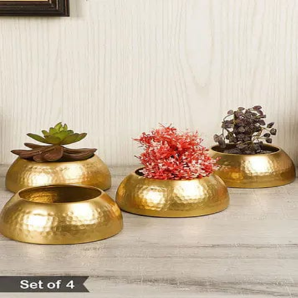 Golden Round Design Iron Flower Pots Small Large Powder Coated Finish Stand Planters for Home Nursery Garden Supplies Wholesale