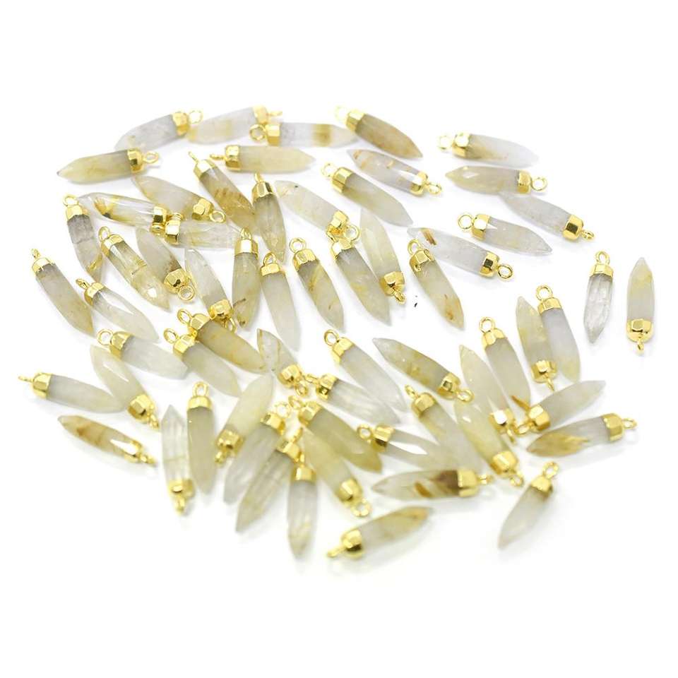 Product Name:Golden Rutilated Quartz Big Spike Shape Gold Plated Pendant