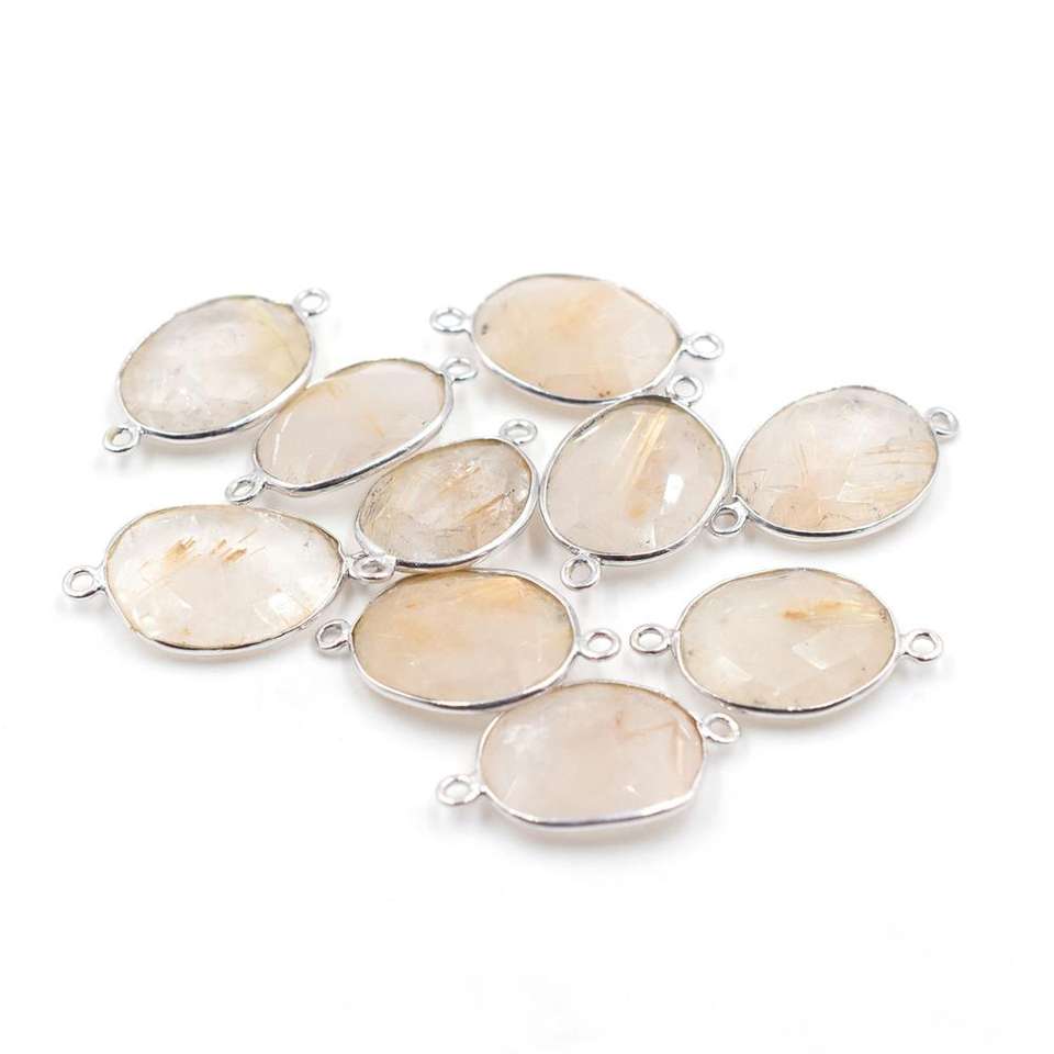 Product Name:Golden Rutilated Quartz Silver Bezel Silver Plated Connector