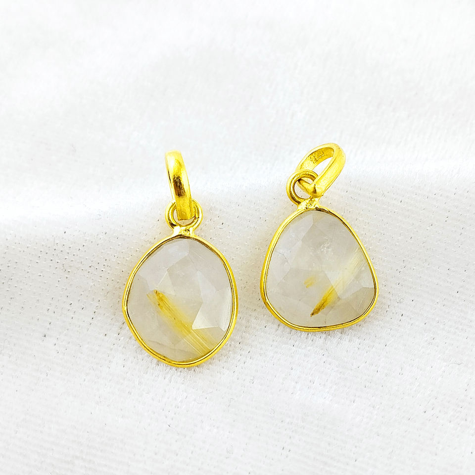 925 Sterling Silver Golden Rutile Fancy Bezel Pendant with Vermeil Table Cut Gemstone for Necklace or Earring