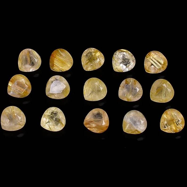 Golden Rutile Quartz Faceted Heart Cut Natural Crystal Gemstone for Necklace Wholesale Craft Making Custom Ring Size Stone