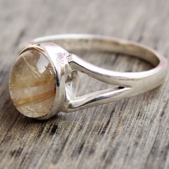 Golden Rutile Quartz Ring: 925 Sterling Silver, Rutilated Quartz Goldstone Anniversary ring