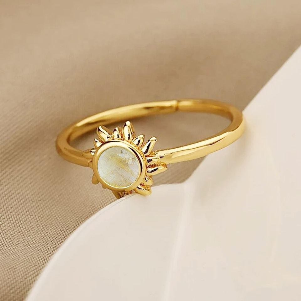 Golden Rutile Sun Ring Luxury Fine Jewelry with Gold Plated Sterling Silver Birthstone Celestial Ring From Top Supplier