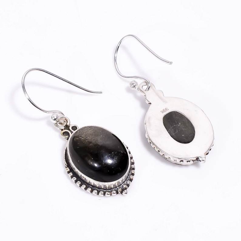 Golden Sheen Obsidian Drop Earrings 925 Sterling Silver Handmade Designer Gemstone Dangle Jewelry Gift