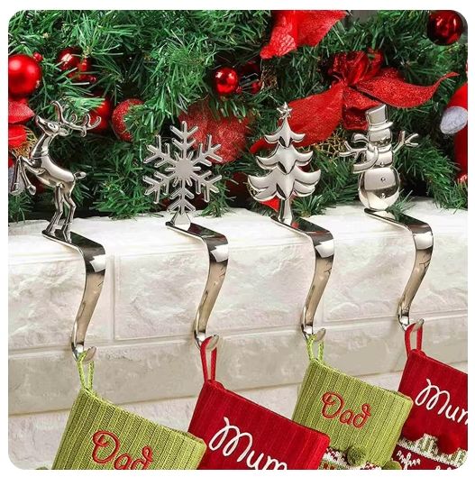 Golden Silver Elk Snowman Snowflake Tree Decorations Christmas Sock Holder Metal Stocking Hook Xmas Mantel Stand Accessories