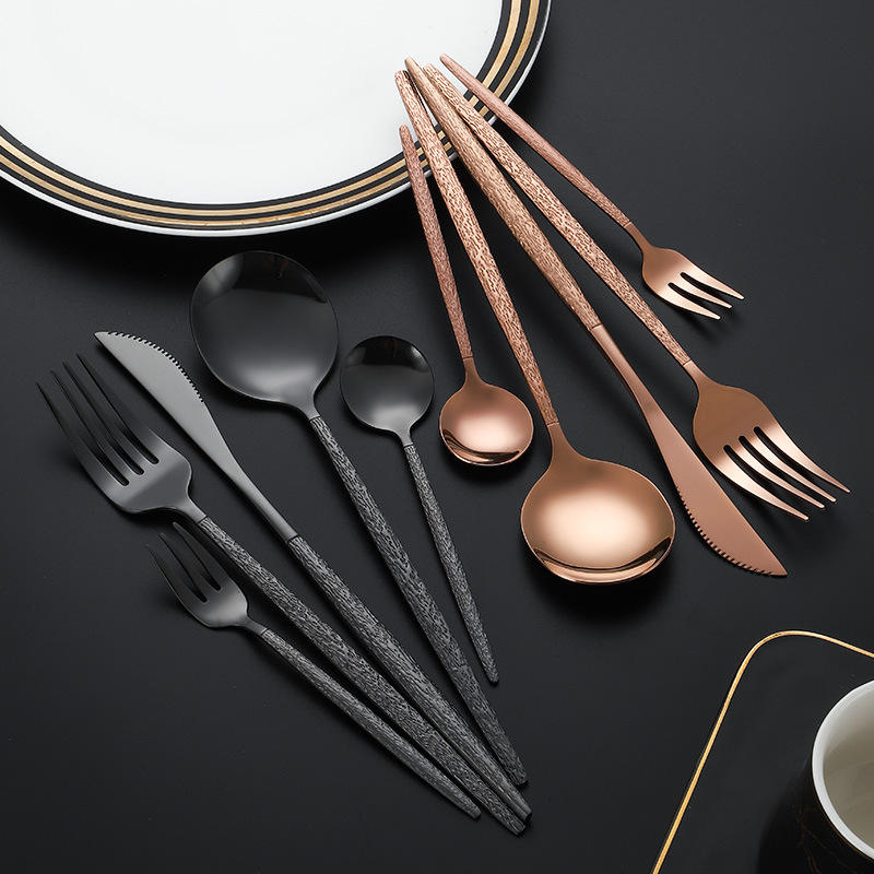 Golden Stainless Steel Knife Fork Spoon Set 5 Piece Hammered Handle Western Tableware Creative Flatware Dinnerware