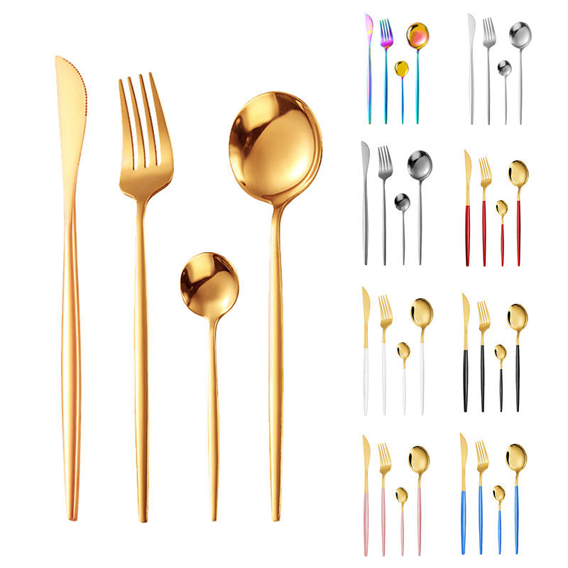 Golden Stainless Steel Knife Fork Spoon Set Rectangular Western Tableware Durable Party Cutlery Dinnerware Set
