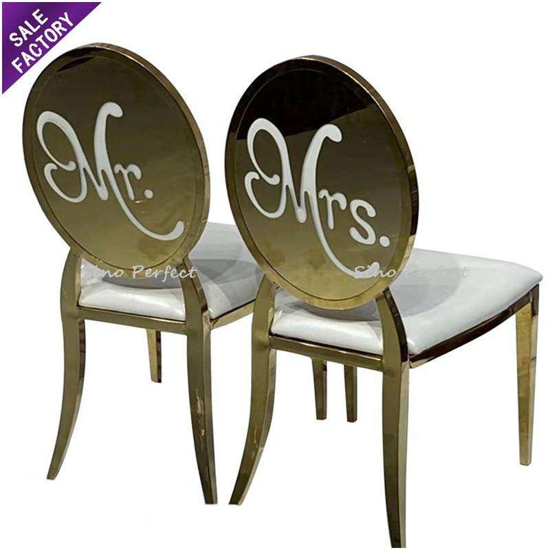 Golden Stainless Steel Pattern Back O Round Stackable Wedding Dining Room Luxury Event Banquet Chair