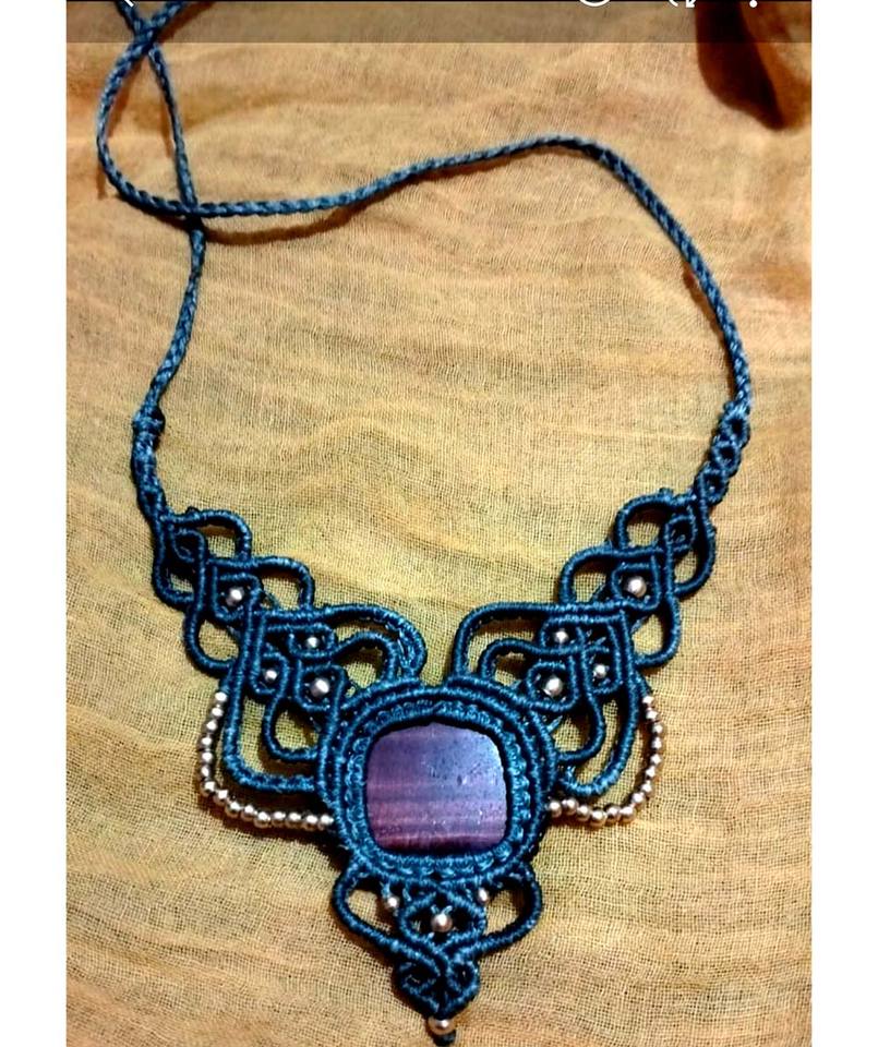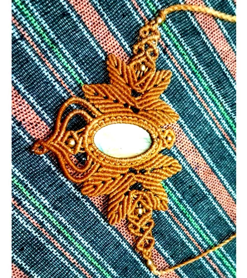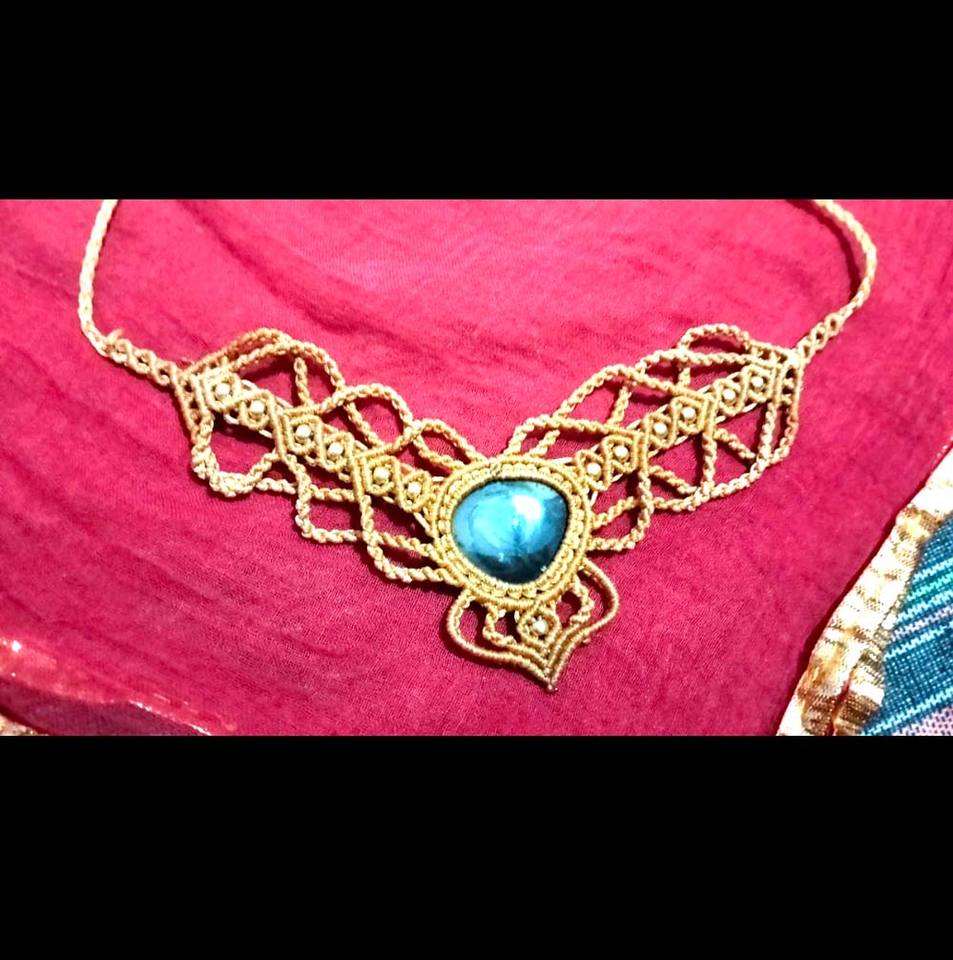 Golden Thread Labradorite Macrame Necklace Oval Gemstone Boho Rope Adjustable Handmade Statement Jewelry