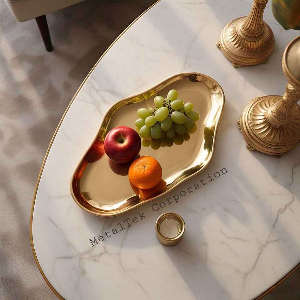 Golden Tray Luxury Modern Shape Design Stainless Steel Mirror Polished Luxury Home Wedding Restaurant Fruit Serving Metal Trays