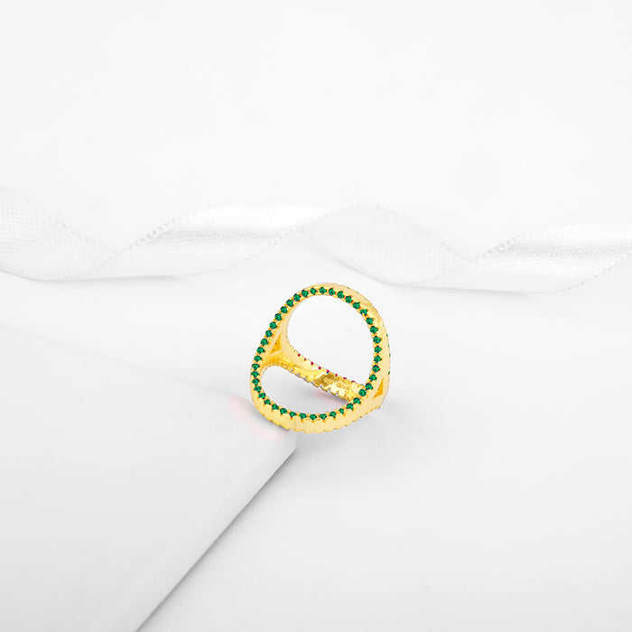 Golden Vintage Religious Geometric Number Inlay Ring Casual Trendy 18K Gold Plating One Size Brass Jewelry
