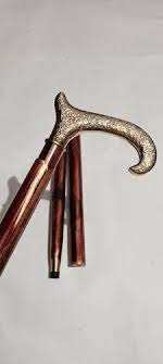 Golden Walking Stick with Metal Handle and Iron/Brass Stick Tip