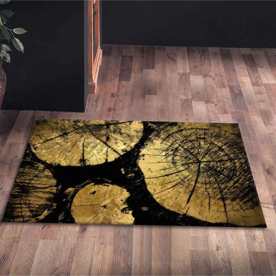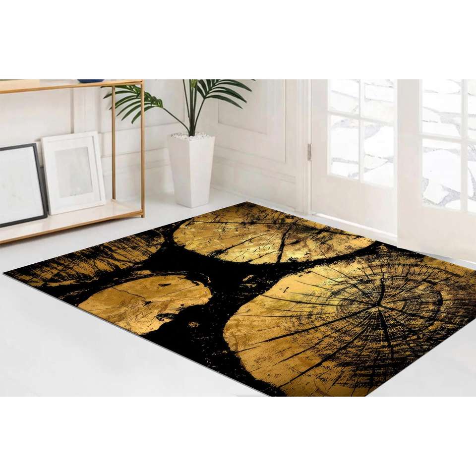 Golden Wood Crack Printed Rug, Black Rug, Gold Rug, Modern Art Salon Wedding Soft Non Slip Rug,Nonwoven Soft Rug