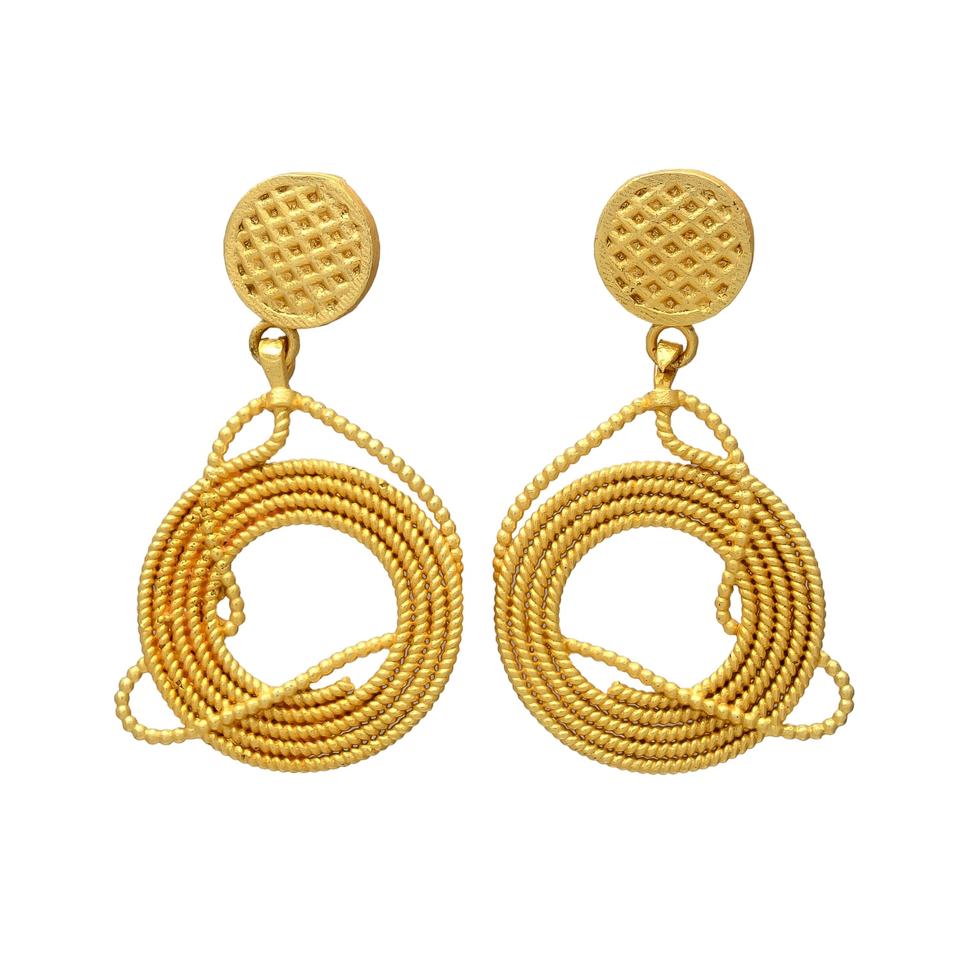 Golden Brass Earrings Golden Blossoms and Whirling Spirals Earrings Ethnic Design Earrings Set for Women and Girl
