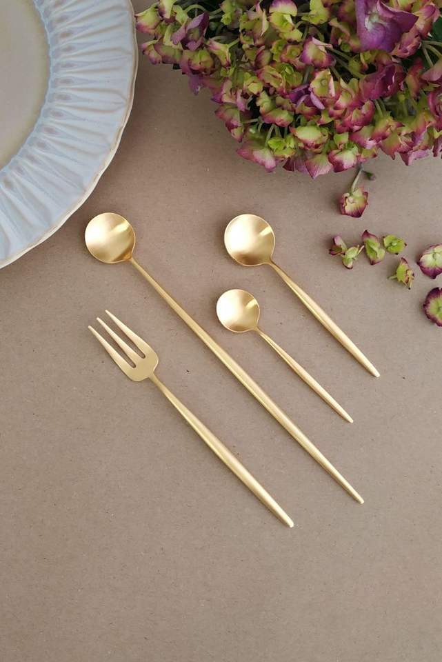 Golden refined heavy stainless steel dining cutlery set suitable for home kitchen restaurant hotel dining and daily serving