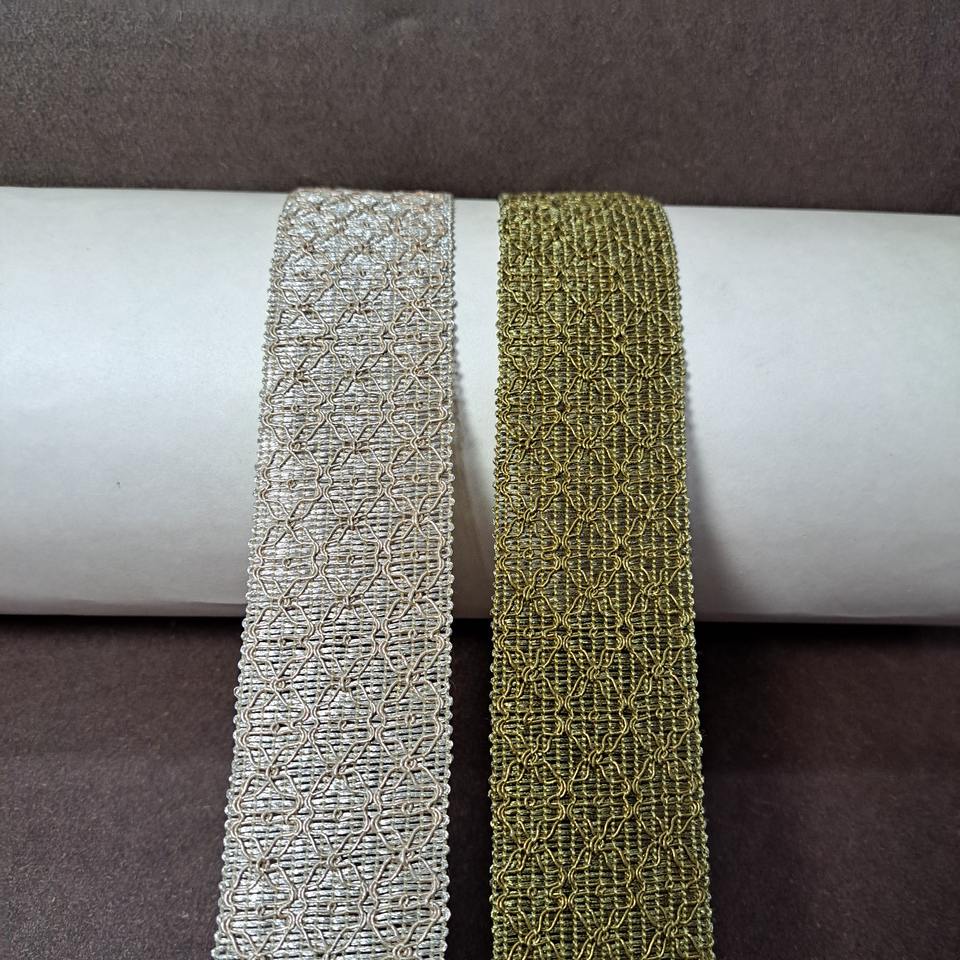 Golden silver metallic trimmings Gold and silver lace borders Zari metallic trimming Glitter yarn lace trims