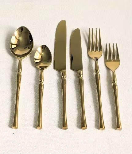 Golden tone of brass cutlery pairs especially well with warm lighting food safe beautiful flatware besteck set