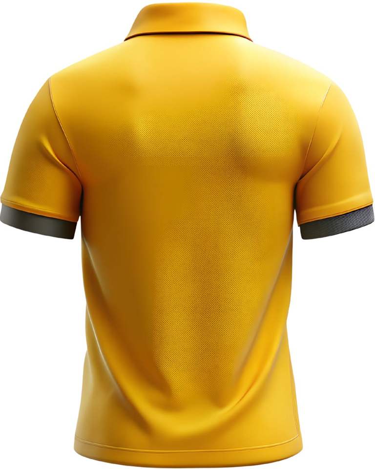 Golden yellow polo shirt for men made with smooth breathable fabric featuring short sleeves and button placket for casual wear