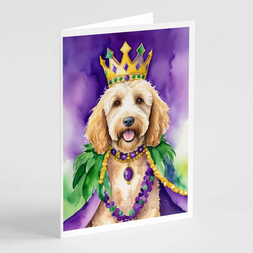 Goldendoodle King of Mardi Gras Greeting Cards Pack of 8 Whimsical A7 Size 5x7 Blank Note Cards with Envelopes