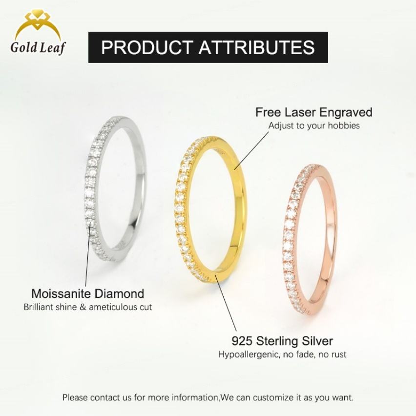 Goldleaf 925 Sterling Silver 0.6ct Moissanite Eternity Band Engagement Ring for Women & Men